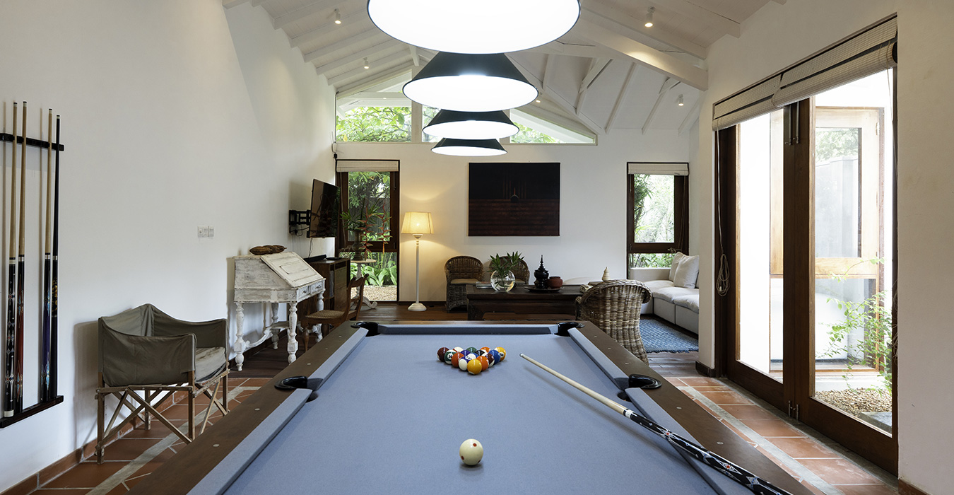 The villa opens onto a spacious lawn that stretches towards the sea, and at its heart is an inviting greenstone-tiled swimming pool featuring a shallow staircase of granite stones. Palms sway loftily overhead and dapple the lawns in sunshine, and our garden offers ample space for a casual family game of cricket, volleyball or football. We have books for you to dip into and a collection of DVDs for those who wish to stay home, curl up and watch a movie. There are restaurants in the vicinity if a change of scene is needed, and bars for an evening out.